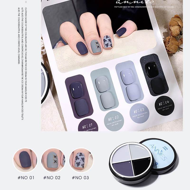 This nail polish set has 4 colors + paper jam. Creative styles of twelve constellations. All colors are very elegant, suitable for any daily work and dating occasions, all the colors you need are included.
