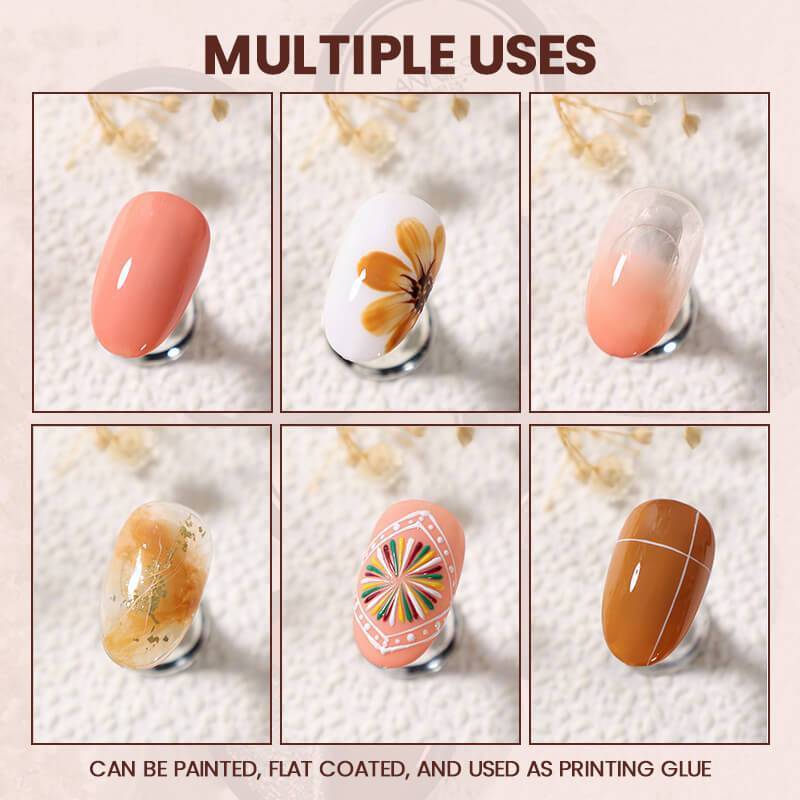 The gel is non-flowing, cream-like texture, very delicate and smooth, it is cleaner to take the gel, it is easy to apply for novices, and it will not flow to the nails.