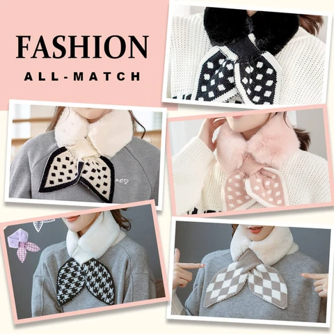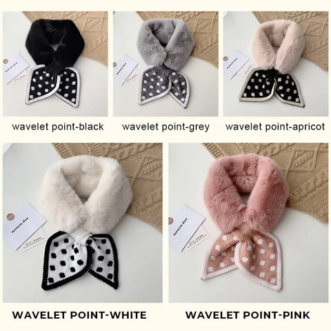 Peach heart wavelet dot/houndstooth/polka dot/diamond grid pattern printed fur collar scarf, easy to wear and perfectly suitable for fur coat, down coat and any jacket, etc.