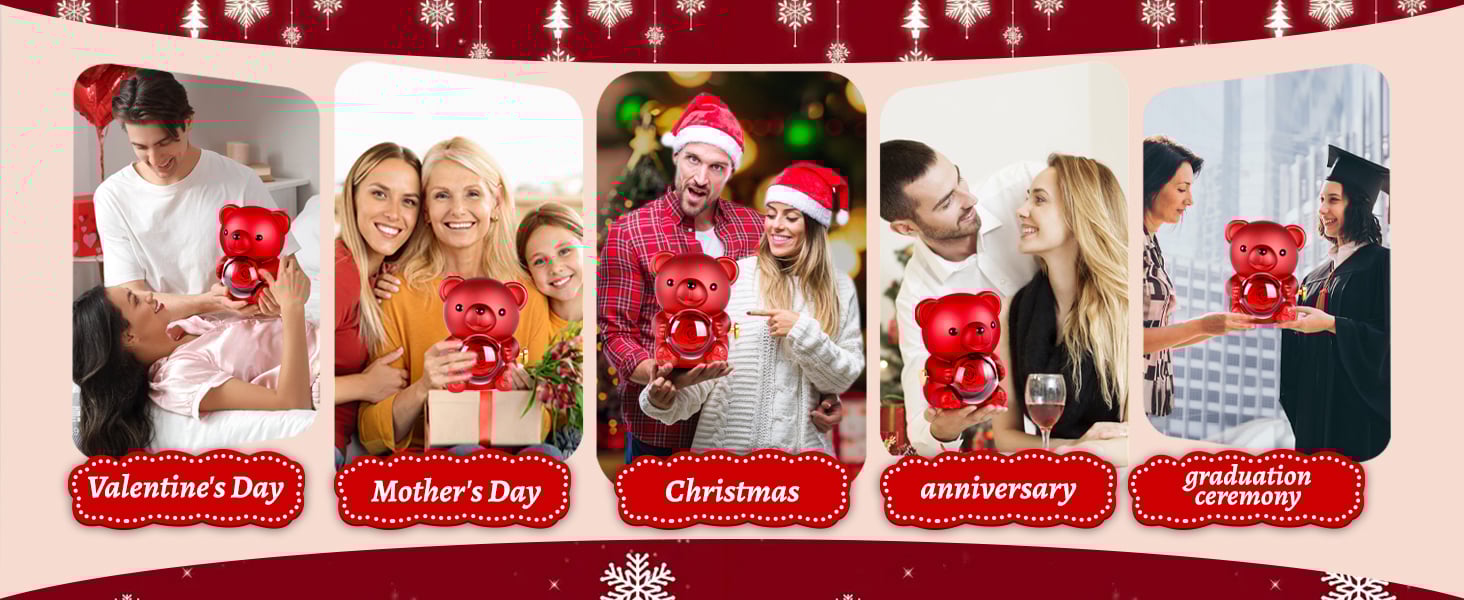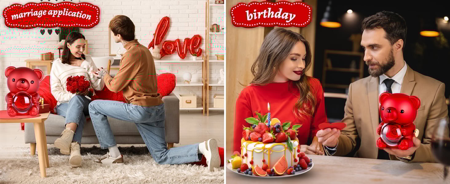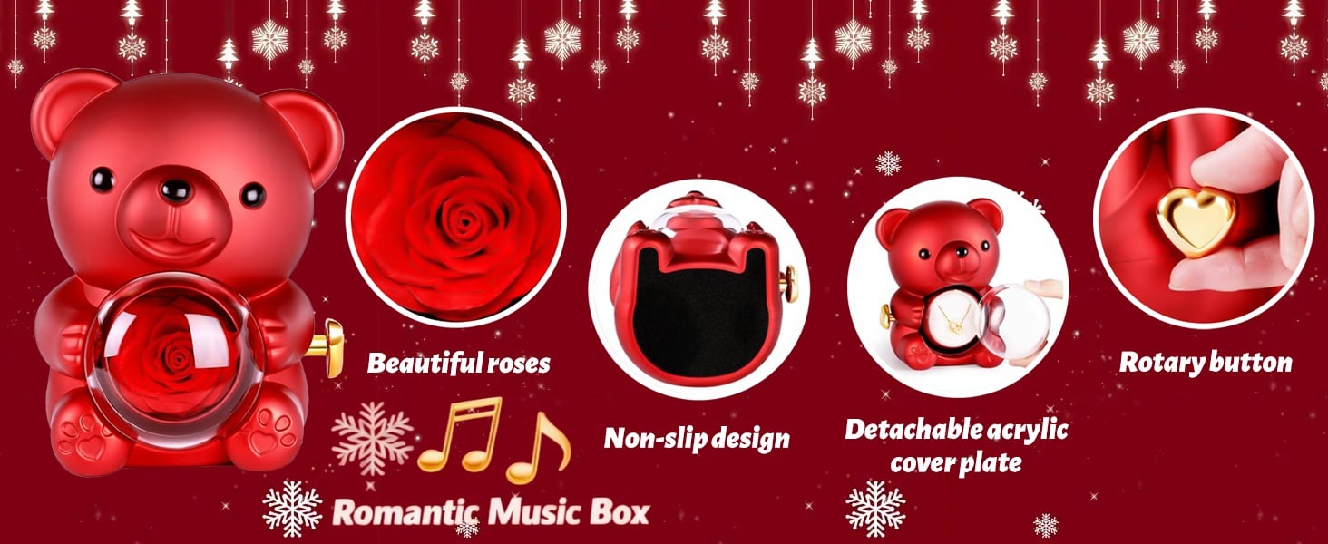 💖 Unique & Cute Bear Design: The adorable teddy bear holds a stunning preserved rose inside a transparent plastic cover. Rotate the golden heart-shaped knob, and behind the rose flowers you can hide the gifts you have prepared for your loved one, such as necklaces, bracelets, rings, etc. Give your loved one a surprise!
