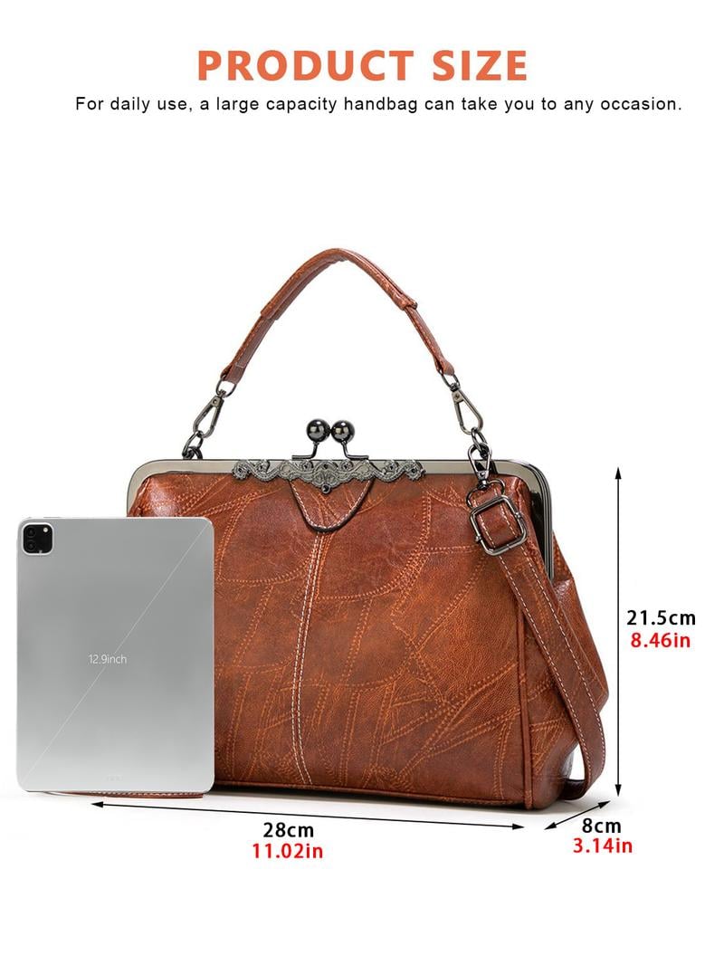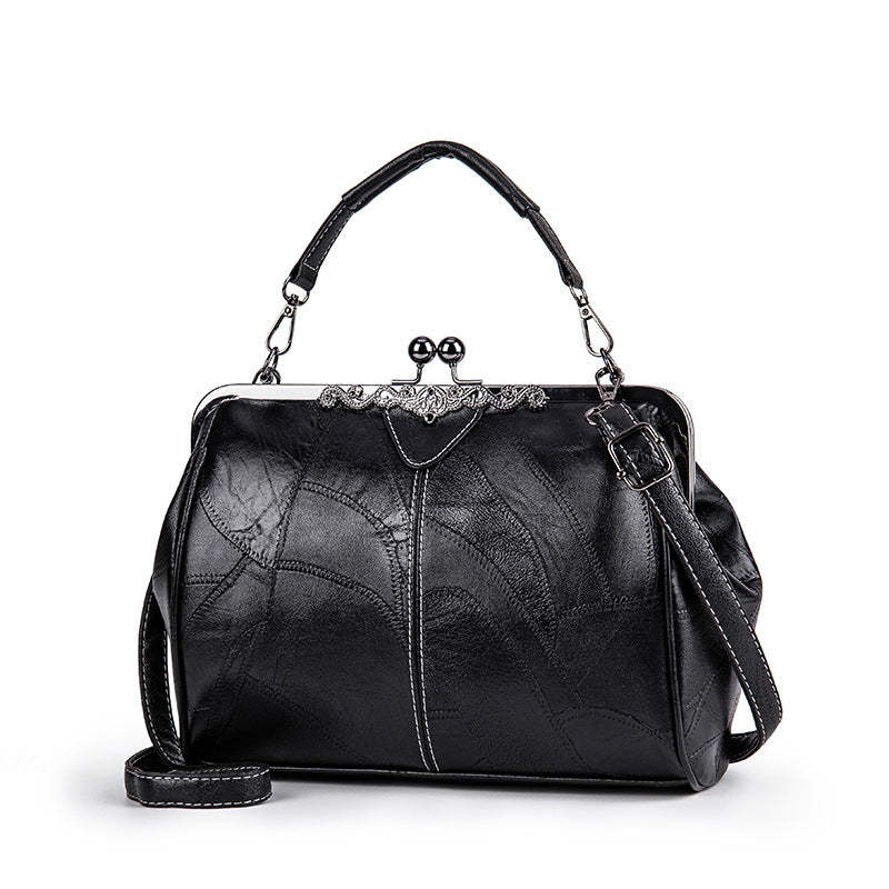 - Elegant vintage frame design in black titanium with a kiss-lock closure, classic retro look, and casual style. Suitable as a handbag, shoulder bag, crossbody bag, messenger bag, or tote bag.
