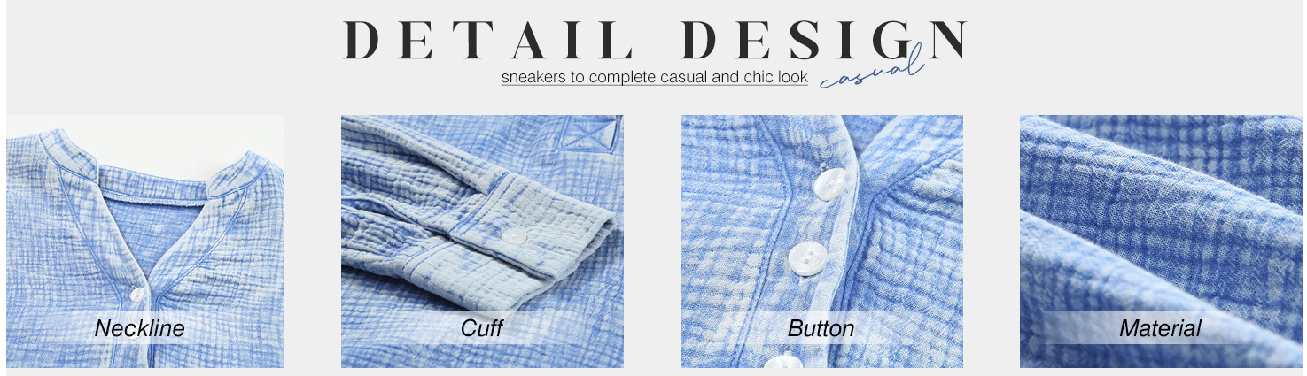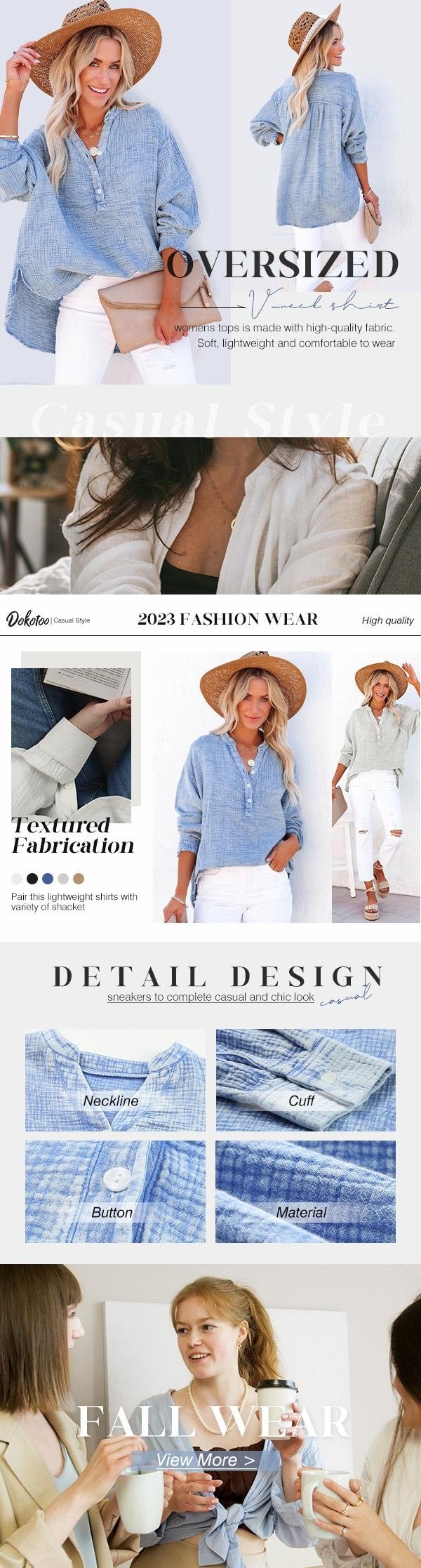 Package Includes:1*Women’s Casual Gauze Button Neck Long Sleeve Blouse