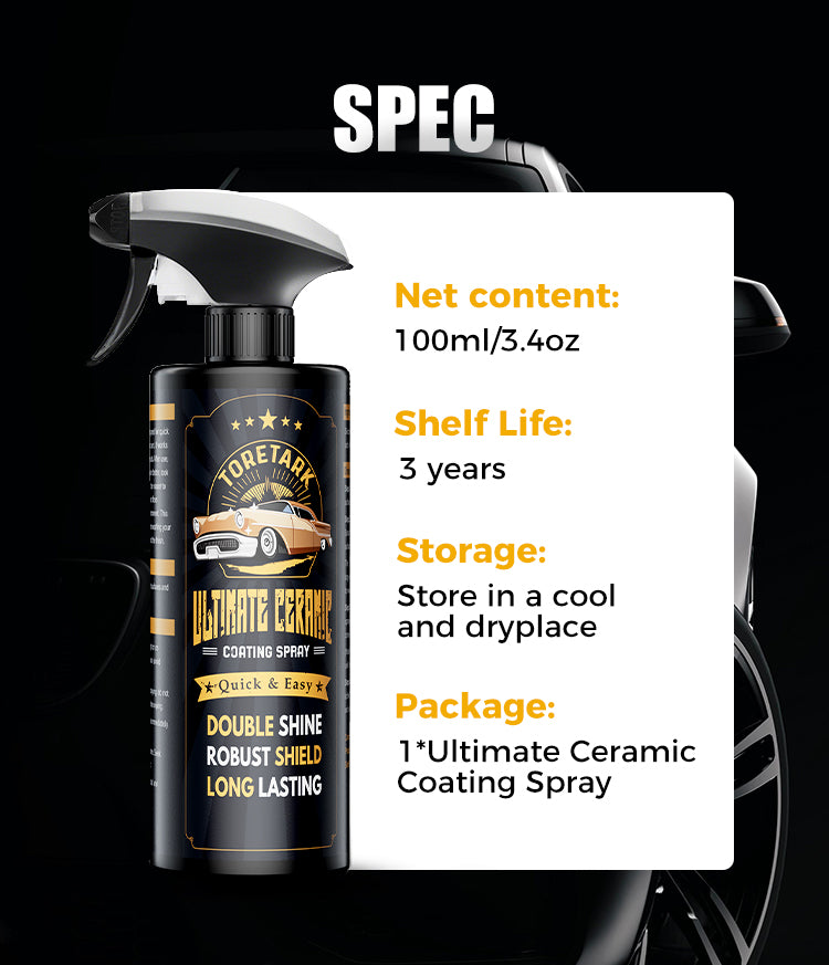 About this item:Easy & Quick Waterless WashUpgraded Ceramic Coating- Become "New Car" Make Vehicle ShineKeeps Shine For 3-6 Months1 Bottle For Entire Vehicle,Multiple UsesEco-Friendly Formula - Safe And Healthy, Use With Confidence