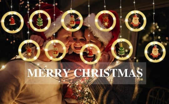 - 🎄UNIQUE CHRISTMAS DECORATION LIGHTS - Christmas window lights come with 10 clear ring lights connected with LED curtain string lights and 10 Xmas theme little ornamental toys (2 Santa Claus, 2 snowmen, 2 Christmas trees, 2 reindeer, 2 Christmas hats). Creative and pretty design create a warm, special, romantic and gorgeous atmosphere for Christmas.
