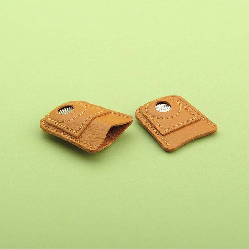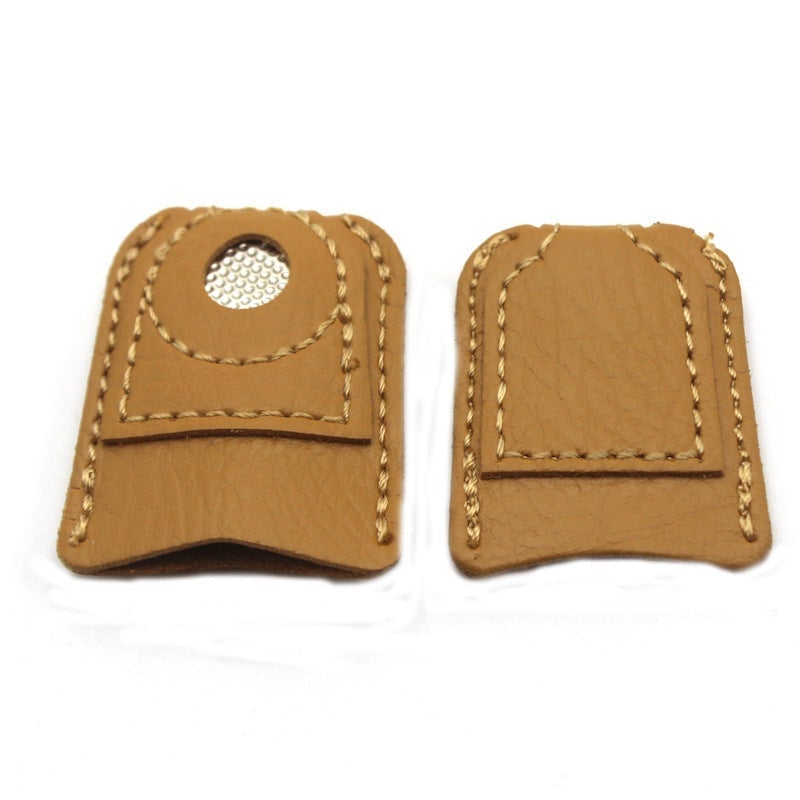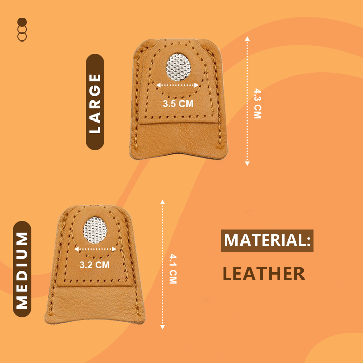 These thimble finger protectors are made of faux leather with dimpled metal coin disc, anti-wear coated cover with durable inner, reliable for long time use, sweat-absorbent, and breathable during the sewing.