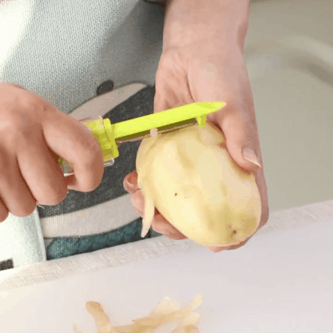 This is not just a scallion cutter! It can also be used for quick peeling. It saves you the cost of a separate paring kni-fe while saving kitchen space. It is a good choice for all housewives!