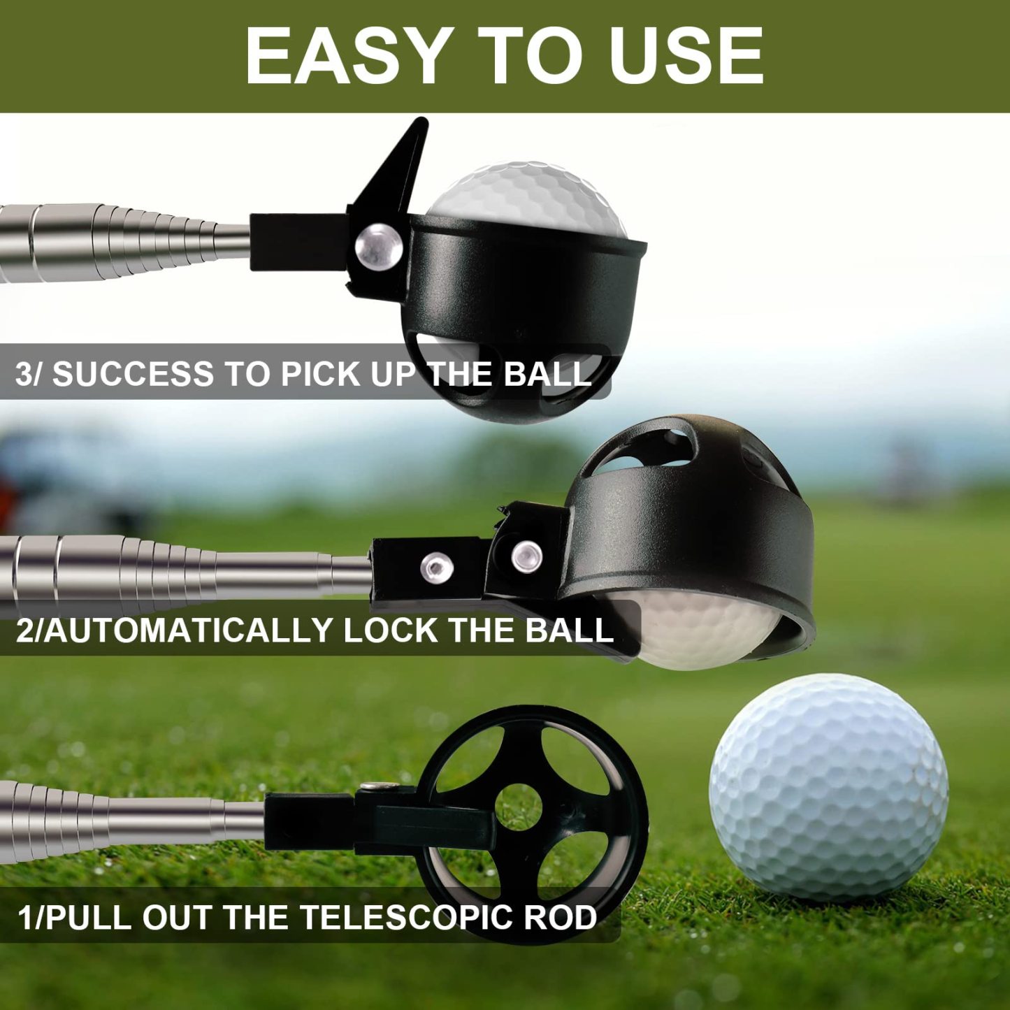 【Stainless Telescopic Golf Ball Retriever】 The retractable design allows you to pick up the ball without bending, which not only saves your energy and time, but also protects your waist. It can also help you easily retrieve your ball from ponds, mud, bushes and lake.