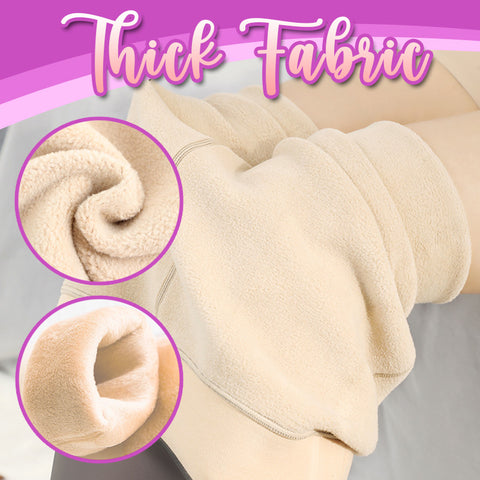 It has two layers for an ultimate warm feeling. The first layer looks fashionable as transparent stockings and goes with every outfit. The second layer is nude fleece which effectively warms your legs.