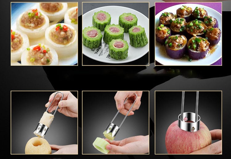 - 🌟 Multifunctional use: In addition to core removal, it can also be used to dig holes and process other fruits and vegetables, suitable for making various dishes, such as cucumber stuffed with meat, nut sandwiches, etc., to take your cooking creativity to the next level!