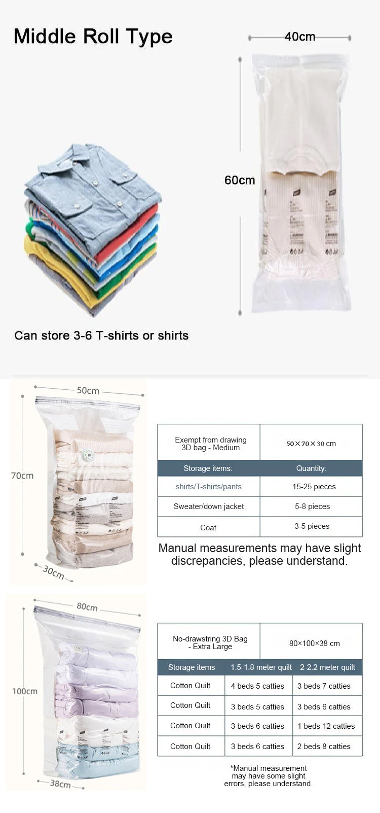5PCS Reusable Vacuum-Free Compression Storage Bags