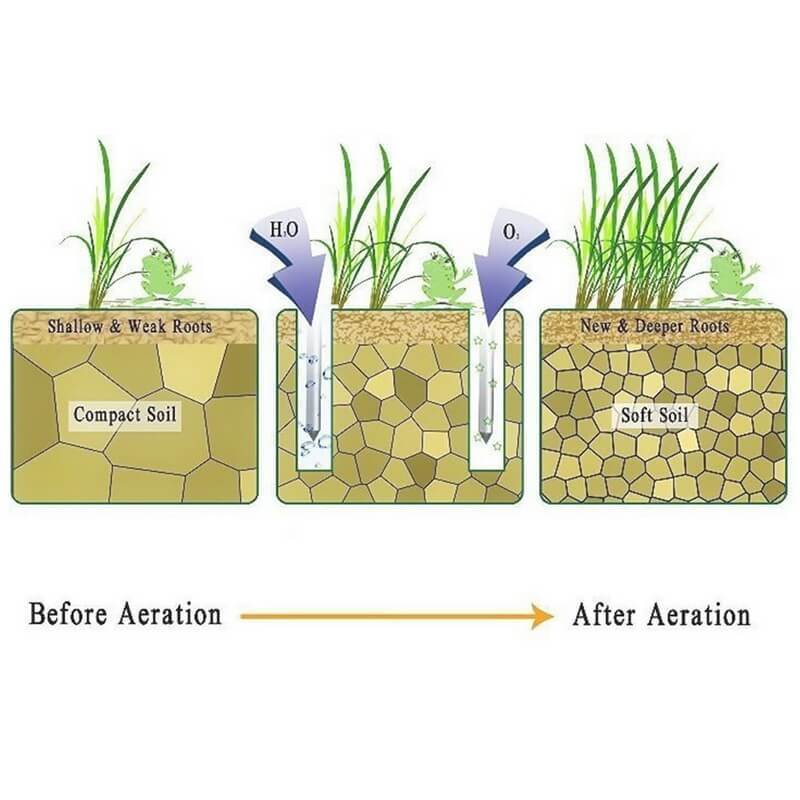 [Soil Loosen] Can be used to help the lawn breathe and promote the growth of green lawn roots and dense plants. Perforated in small holes to allow better penetration of air, water, and other nutrients, making your lawn stronger.