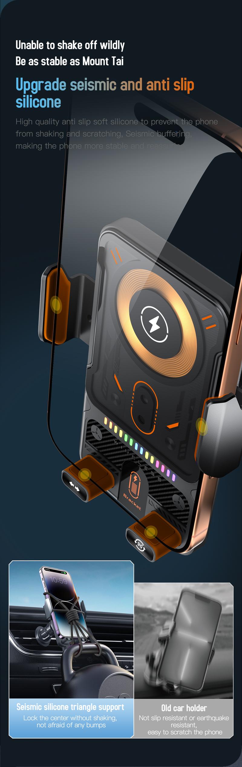 🚗📱 2-in-1 Car Phone Holder & Wireless Charger – 360° Rotation, Strong Grip & Fast Charging 🔋
