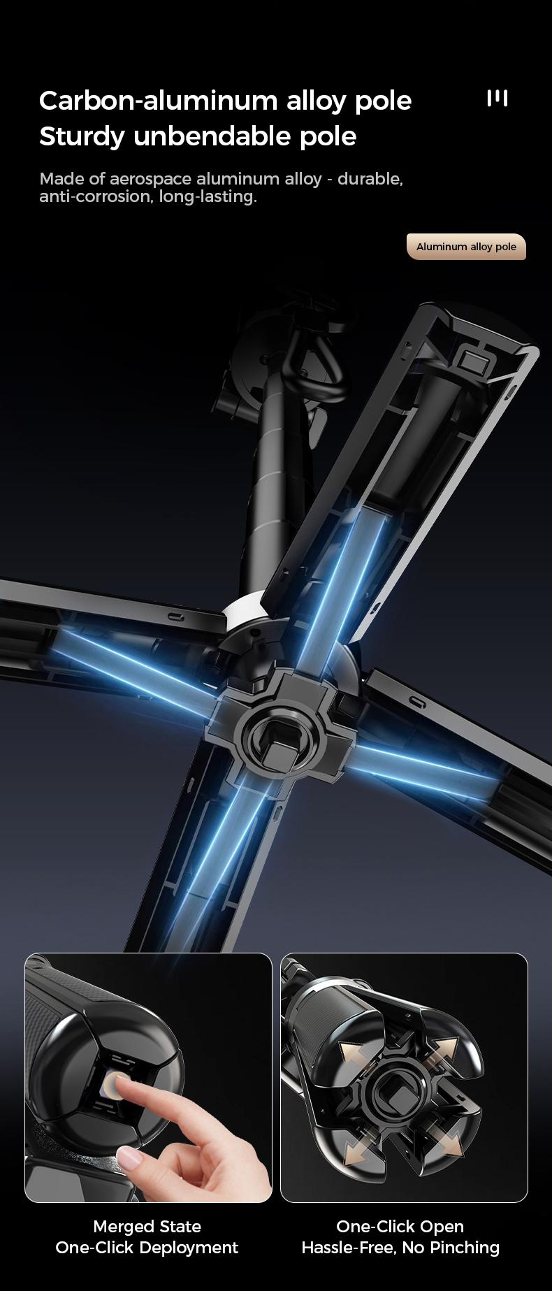 【4-in-1 Magnetic Tripod】 stands out with its strong magnetic design, functioning as a grip handle, desktop stand, and selfie stick all in one. Its versatility makes it perfect for travel, vlogging, conferences, live streaming, and photography, providing convenience, stability, and fun to your shooting experience