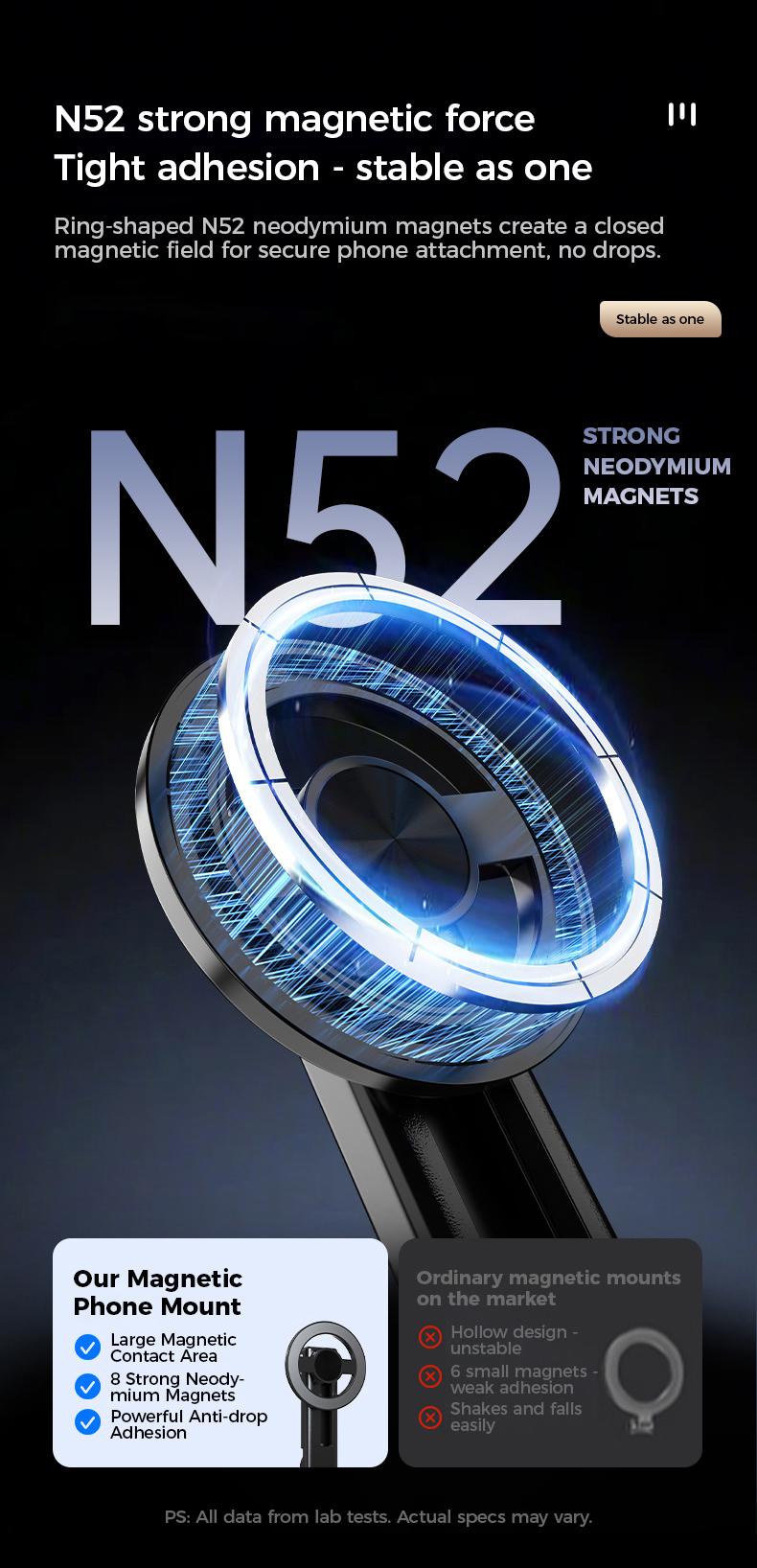 【Dual Magnetic Suction & Instant Adsorption】Featuring powerful dual-sided magnetic suction, the allows simultaneous use of your phone and other magnetic accessories securely and without slippage. Simply bring your phone near the magnetic part to adsorb it instantly. For cases that reduce magnetic force, use the included magnetic ring for better compatibility