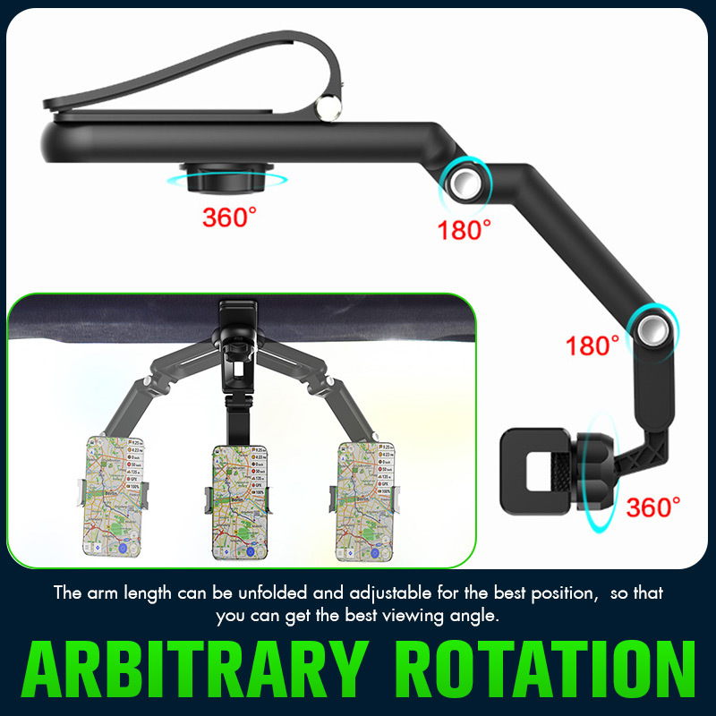 The phone holder is mounted on the car's sun visor and levels with it to keep your eyes on the road. No need to look down at navigation, and get a more comfortable and safer user experience.It won’t block your sight. The arm length can be retractable and the angle can be adjusted for a better and safer driving experience.