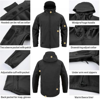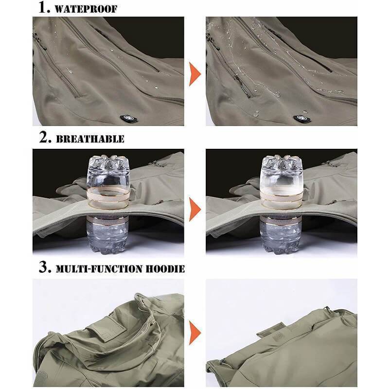 HIGH QUALITY The Military Tactical Jacket composed of breathable moisture wicking fabric and features a waterproof polyester shell, it is durable, waterproof, lightweight, breathable.