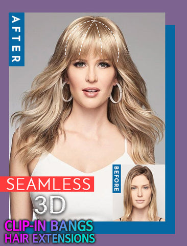 Seamless 3D Clip-In Bangs Hair Extensions subtly give you natural bangs without risking a chop, featuring an easy slip-on style for a seamless hair transformation.