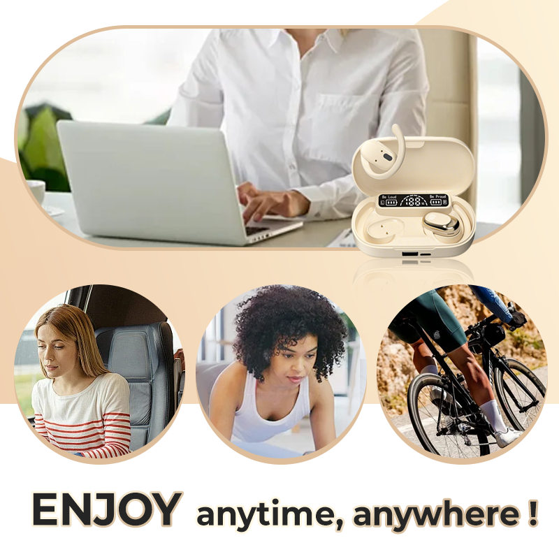 INNOVATIVE EAR-FITTING TECHNOLOGY: The Headset features a unique ear-hanging design, offering a secure, comfortable fit that stays in place during even the most intense activities. This design ensures that your ears remain free, enhancing awareness of your surroundings. Perfect for workouts or outdoor use, it combines stability with convenience.