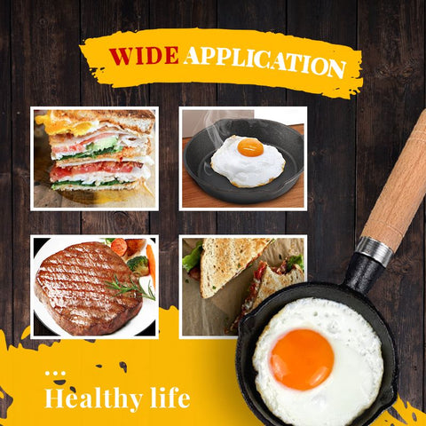 Mini nonstick iron pan is suitable for making sandwiches, soft-boiled eggs, pancakes, fried steaks, scrambled eggs, omelets, and other smaller portion, sunny side up food, etc.