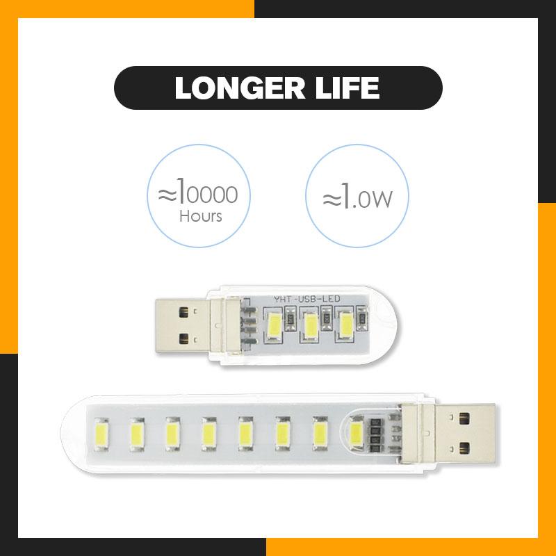 Each usb light is composed of 2,3 or 8 LED beads with a service life of about 10,000 hours, and each bead is independent of each other. Even if individual beads are damaged, other beads can still work normally.