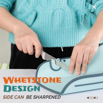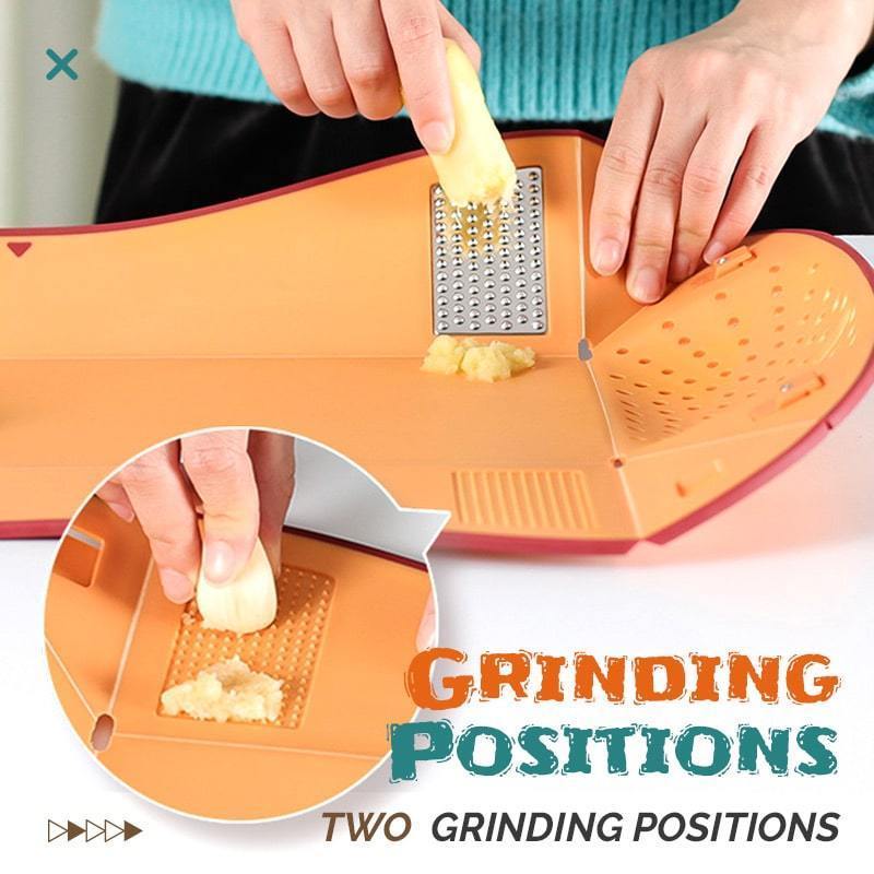 The unique design of Collapsible Cutting Board, it is equipped with two grinding areas, which can grind ginger, garlic and other ingredients. And a small sharpener is designed on the side to easily solve the problem of blade dullness.