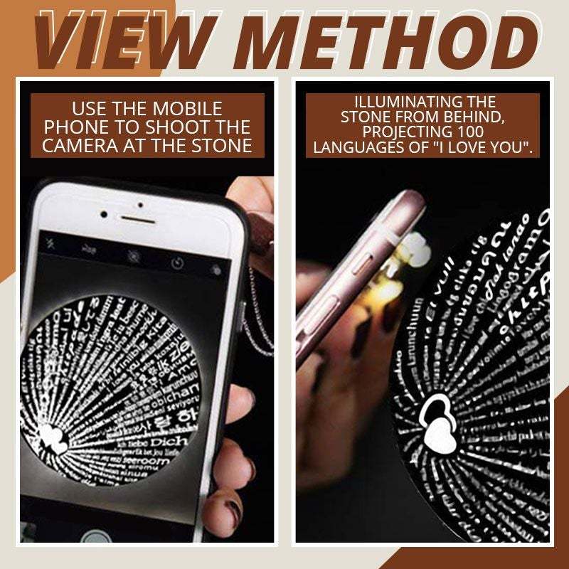 Our projection necklace adopts a miniature design, and I love you is engraved on this necklace in 100 different languages. At night, illuminate it with a flashlight, and you can cast 100 words of I love you on the wall at night. This is a very romantic thing.