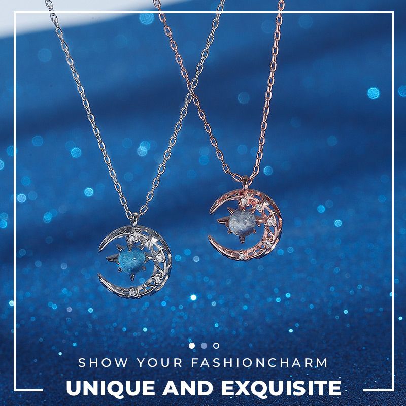 ✦ The blue starry gem sparkles as it sits in the crescent (diamond inlaid), making the necklace simple yet elegant. It is a classic necklace for every woman!