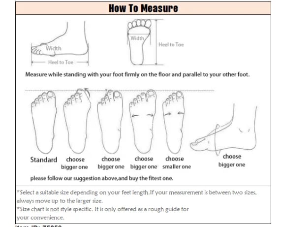 Please check the measurements to make sure the item fits you before ordering. If your feet are wide, please choose a larger size.