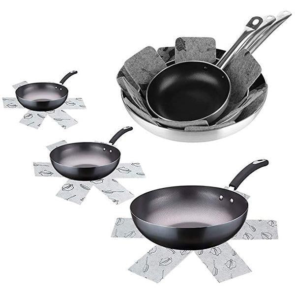 MULTI-USED & PRACTICAL: In addition to the convenient storage of your frying pots and pans, you can even use them to prevent the hot pot from damaging your furniture. And they can also be used to pad the hot dishes. Our pan savers can be easily trimmed to perfectly fit your pans.