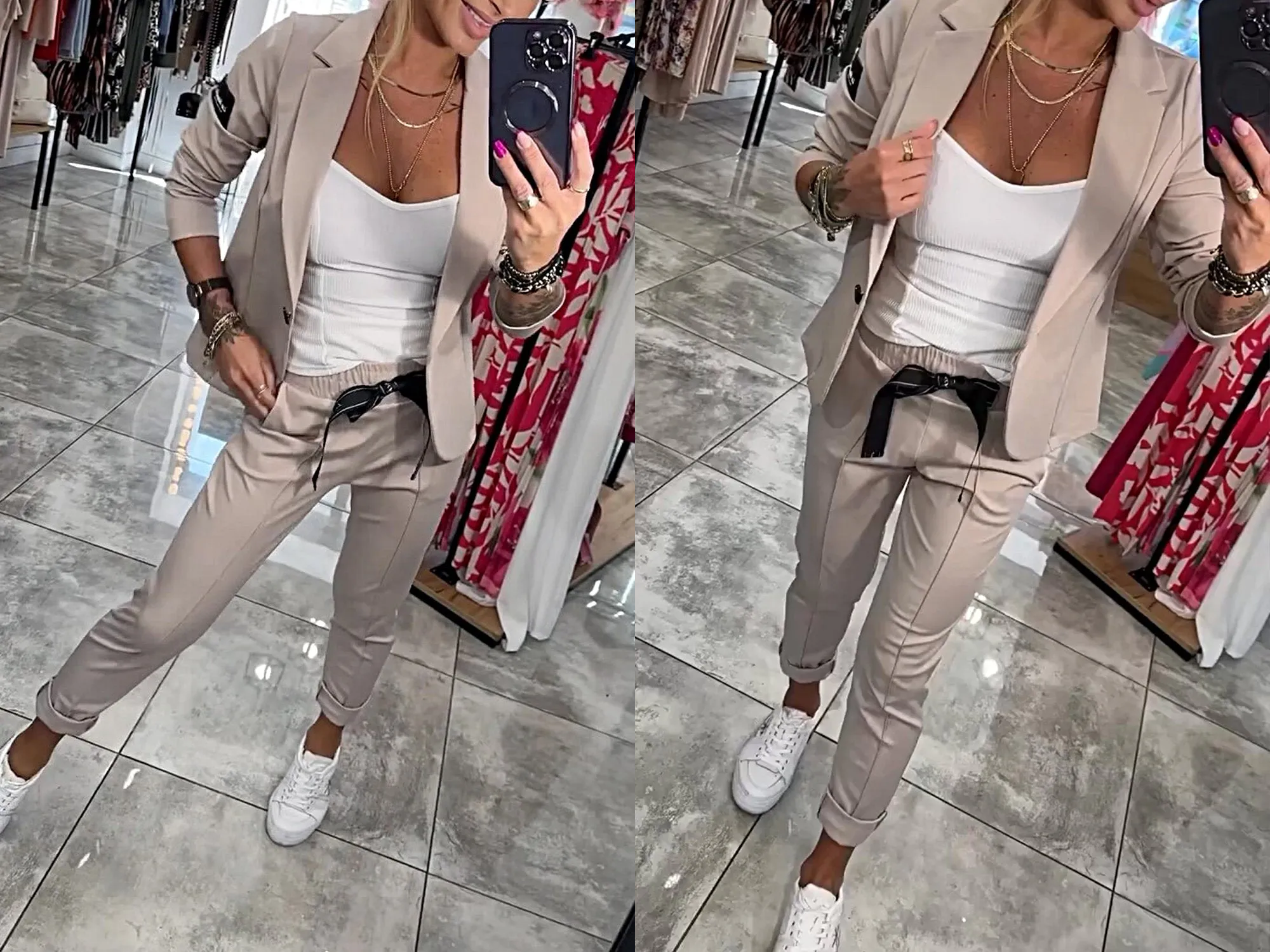 STYLISH SUIT JACKET: Features a trendy khaki color that effortlessly pairs with various outfits. Its contemporary design includes a relaxed fit, making it perfect for layering over your favorite tops.