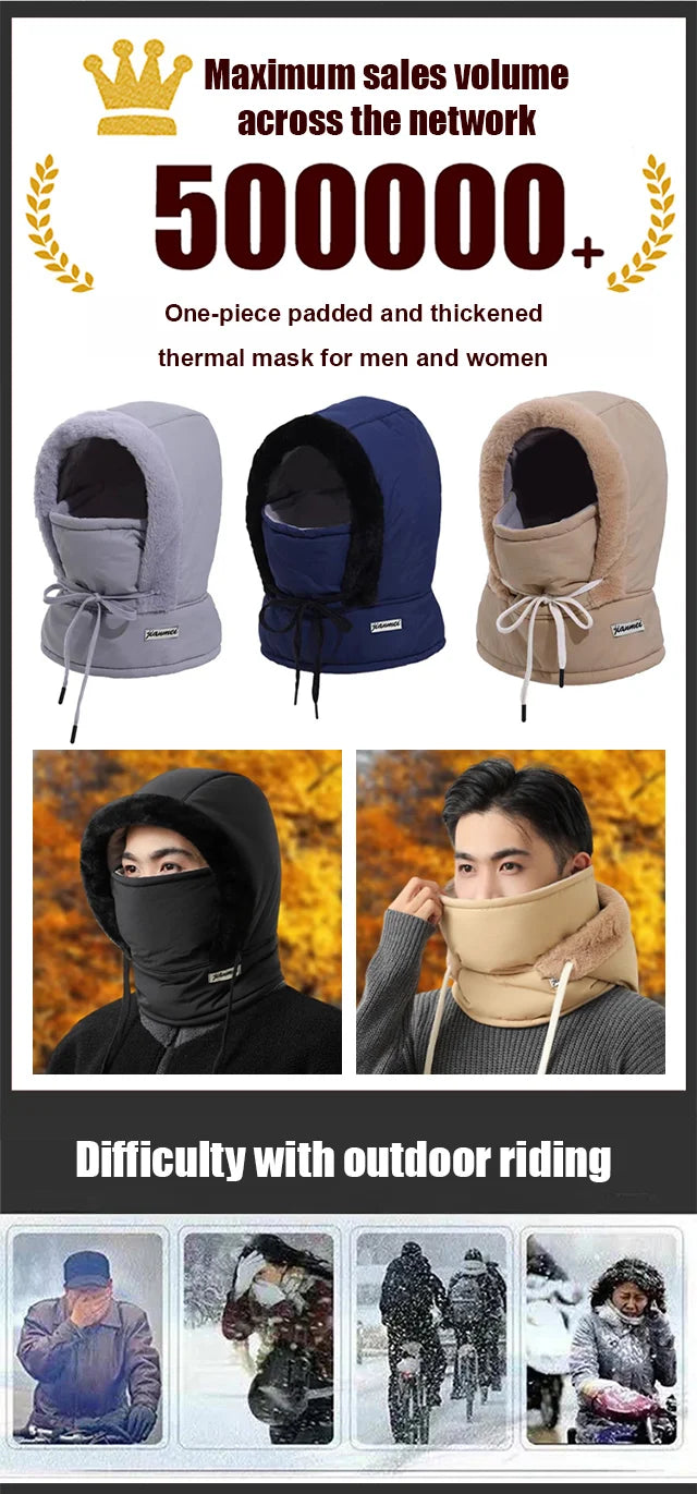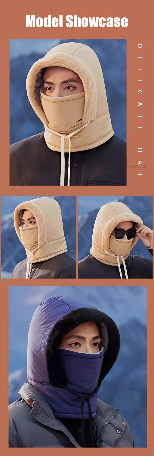 Plush-lined Thickened Thermal Hat with Face Mask for Men and Women