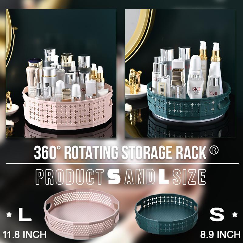 Convenient Set This lazy bathroom cabinet organizer includes 2 differently sized rotating shelves measuring 8.9 and 11.8 inches turntable in diameter. The turntable organizer bathroom is an excellent housewarming present for friends and loved ones, which is sure to be appreciated!