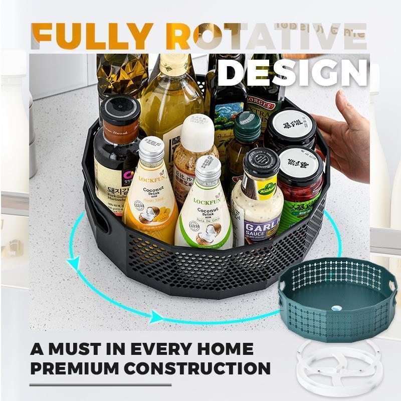 Premium Durable Construction This lazy turntable is made with superior quality, highly durable eco-friendly materials, with heavy-duty reliable handles, non-slip TPR mat, and non-skid base, lazy organizer being easy to wash and guaranteed to last for many years!