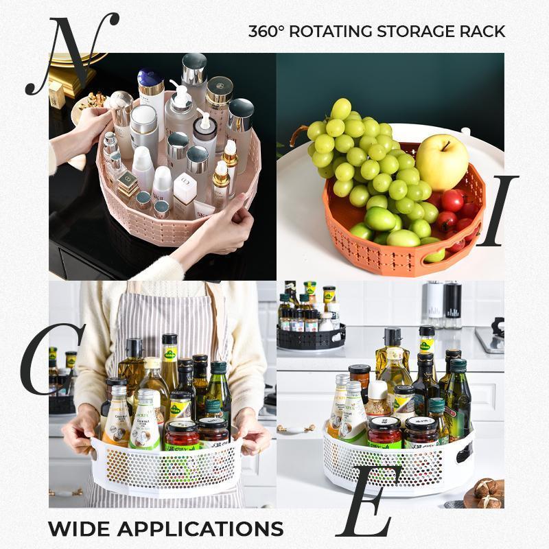 Wide Applications The turntable for cabinet shelves being used for cosmetics, bathroom essentials, shampoos, and shower gels, for spices and herb jars, fruits, jams and jellies, snacks, DIY arts and crafts hardware, and much more!