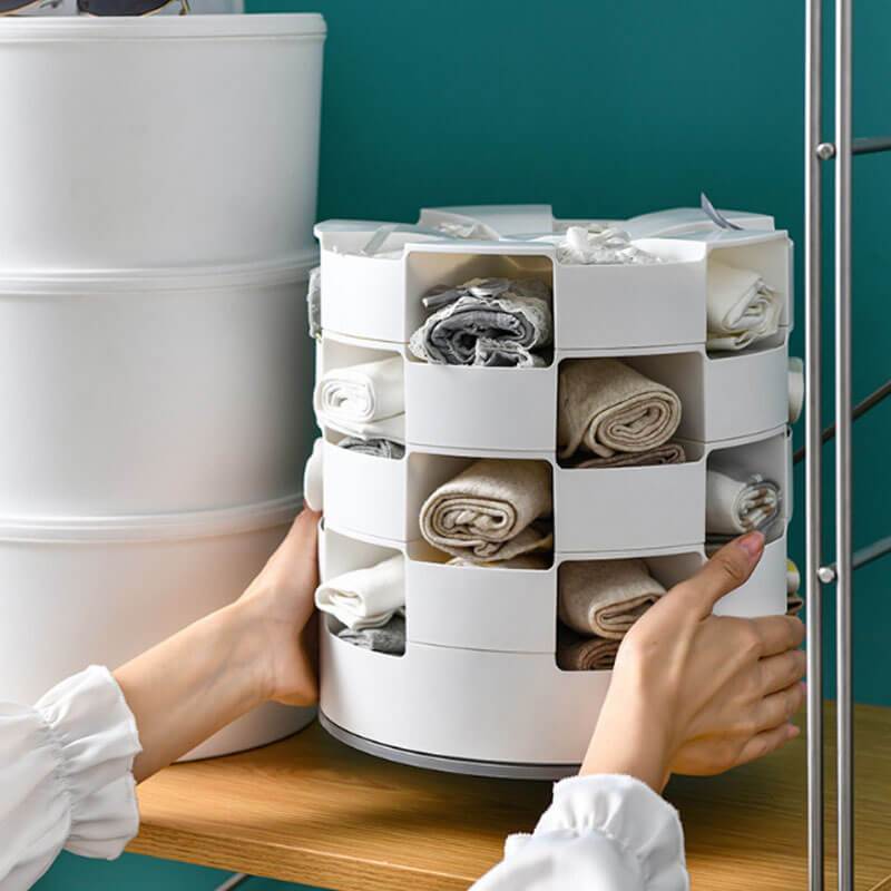 Find a home for your underwear and socks! The storage box with large capacity, rotatable, and dividable compartment is the best home partner.