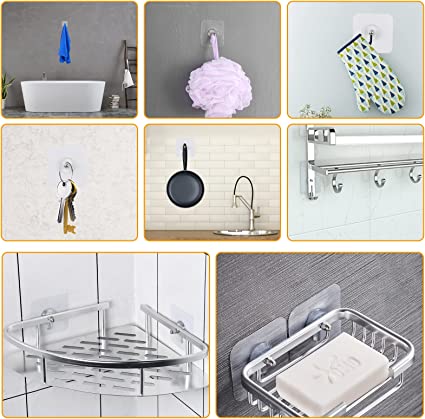 HEAVY DUTY ADHESIVE HOOKS- self-adhesive Great for hanging shower and bath accessories can hold umbrellas scarvestowels robes bags coats keys purses and baseball capsdog leashes etc.