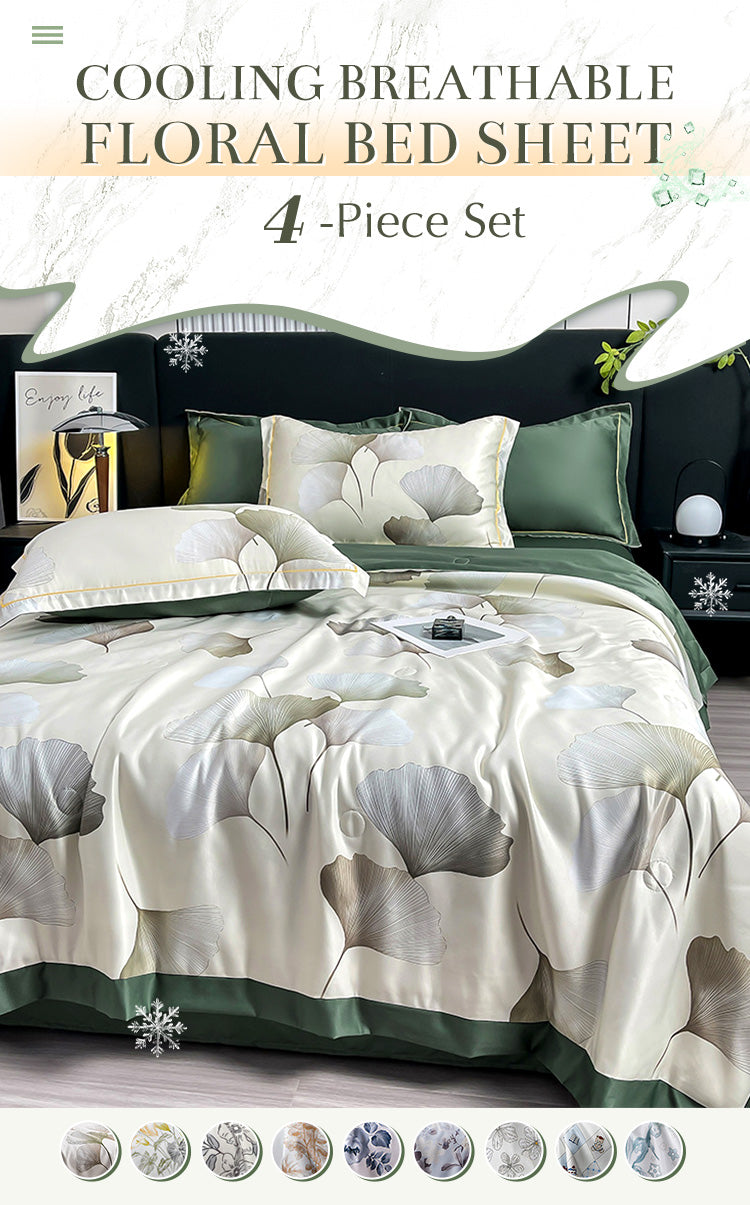 Cooling Breathable Floral Bed Sheet 4-Piece Set