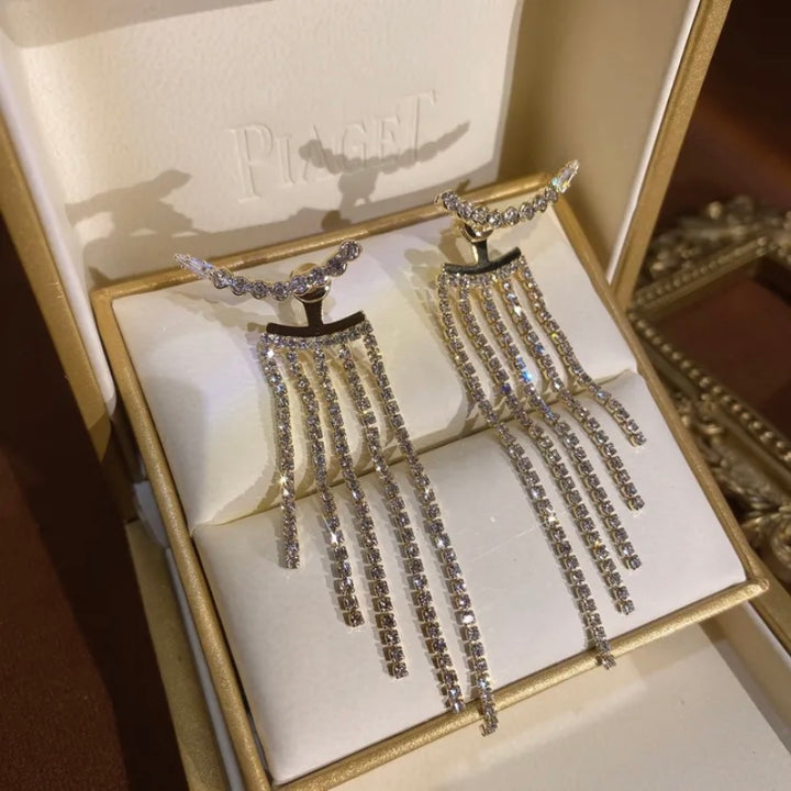 These sparkling long tassel earrings are beautiful, dazzling, shinning, and gorgeous!