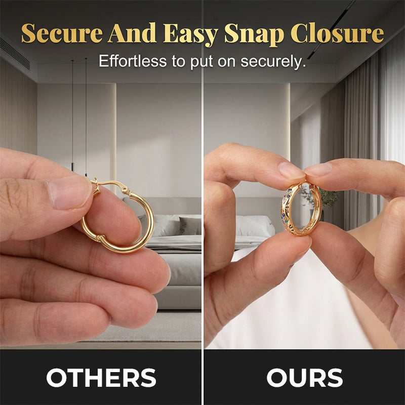 SECURE AND EASY SNAP CLOSURE - The reliable snap closure mechanism ensures that your hoop earrings stay securely in place while being incredibly easy to put on and take off.