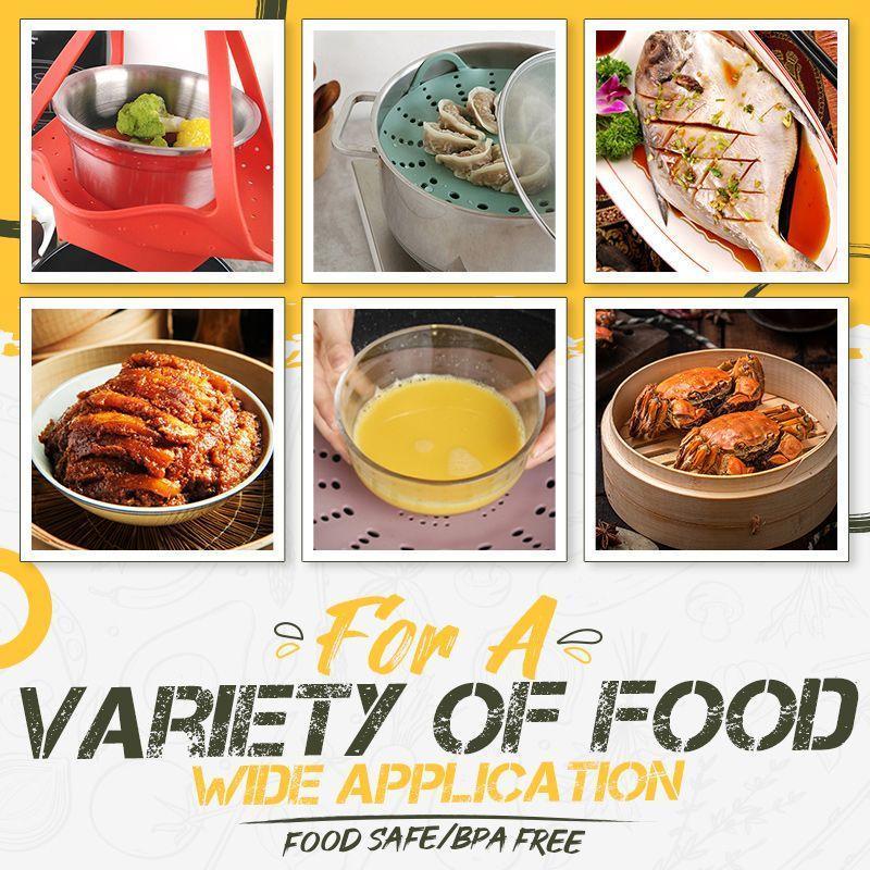 Let’s get this Flex-Soft Steaming Rack, which will help you easily deal with the hot dishes. You can also directly put food on it to steam, such as steamed buns, dumplings, vegetables and so on.