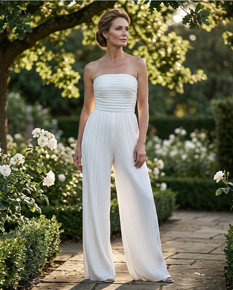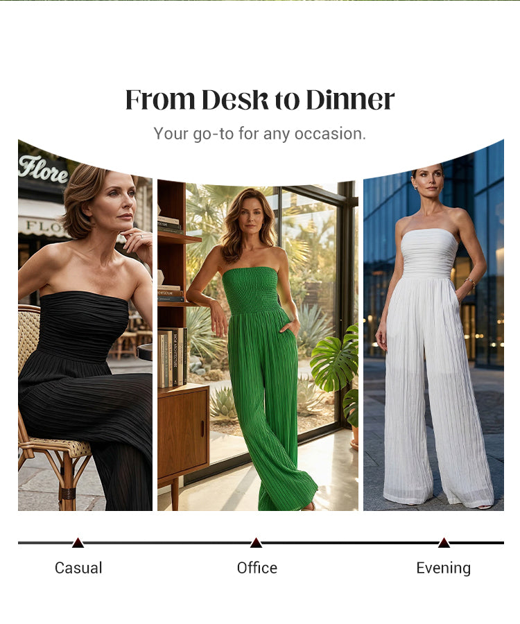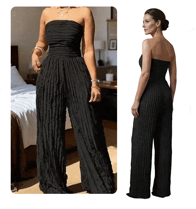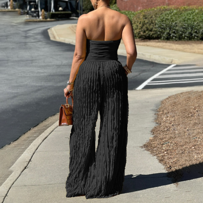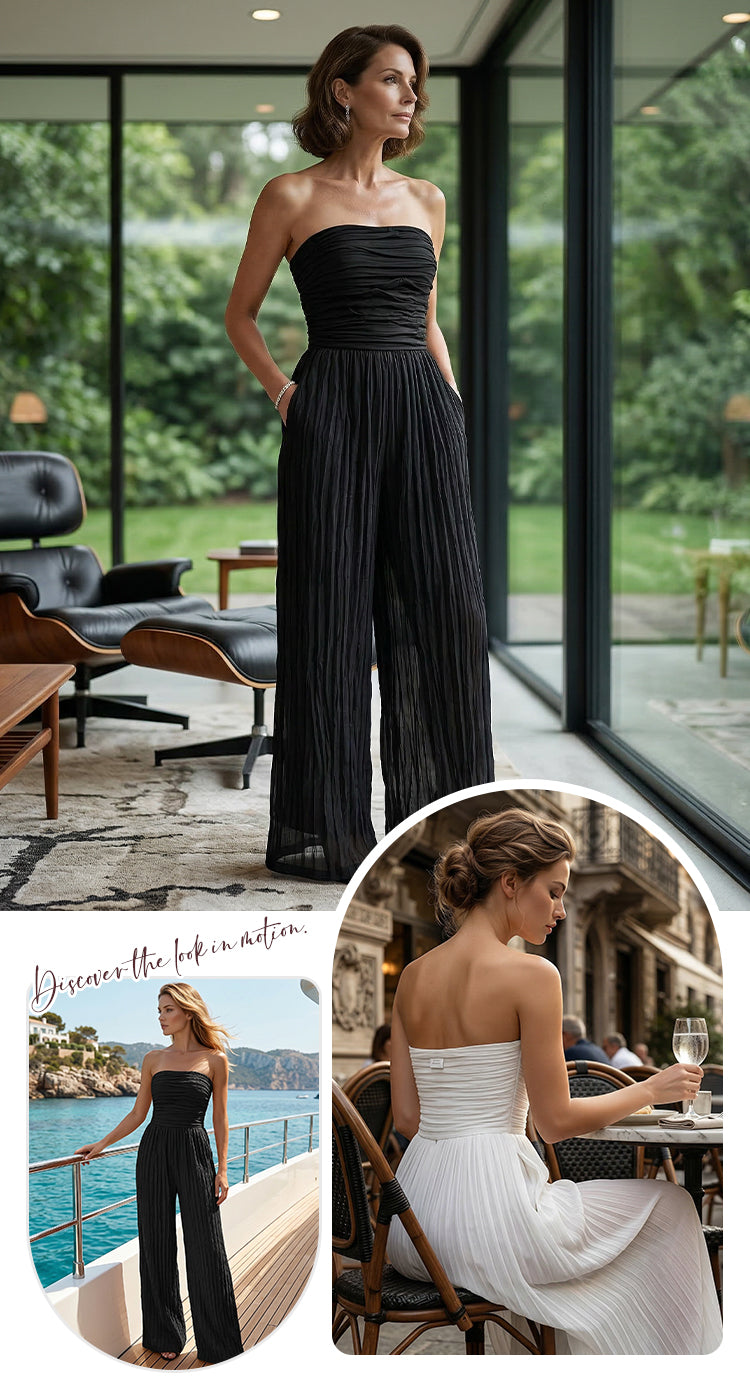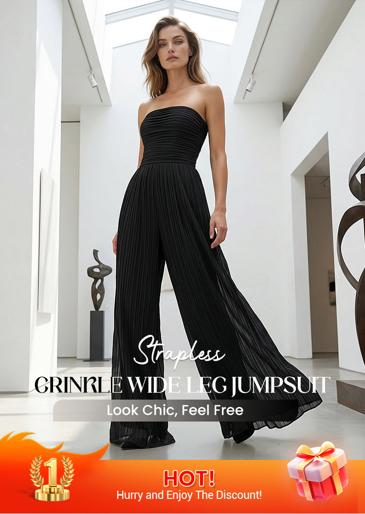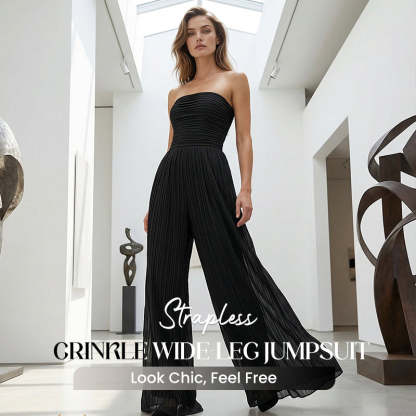 Strapless Crinkle Wide-Leg Jumpsuit
