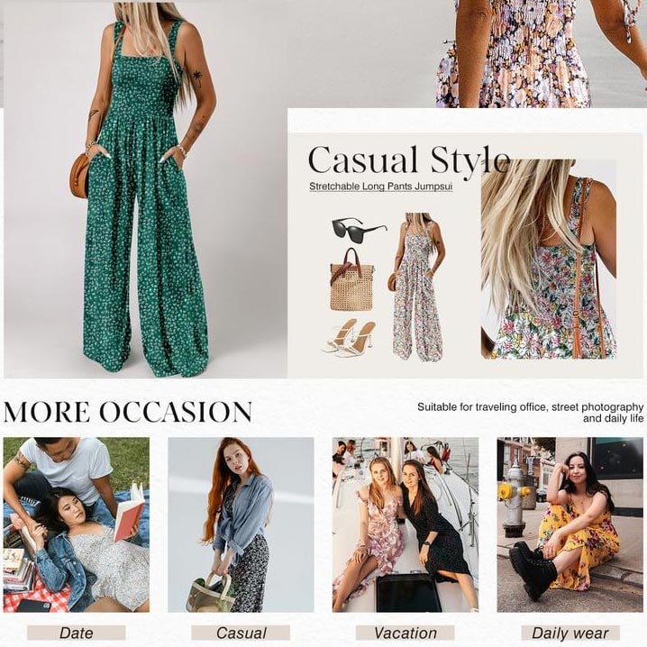 With the elastic smocked bust designs, these rompers for women can be more comfortable and fitted. The floral print designs, also add a summer trendy look.