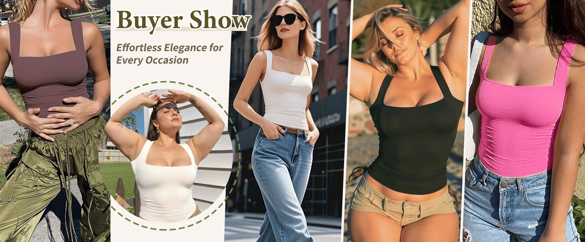Package Includes:1*Women's Square Neck Sleeveless Double-Layer Tank Top