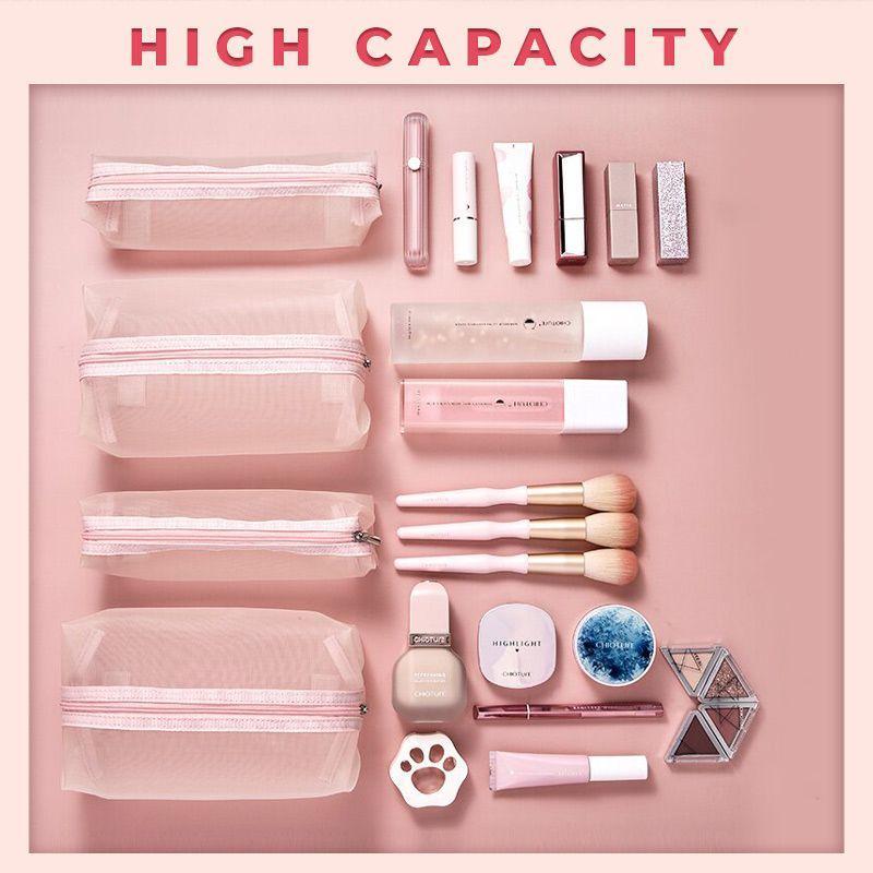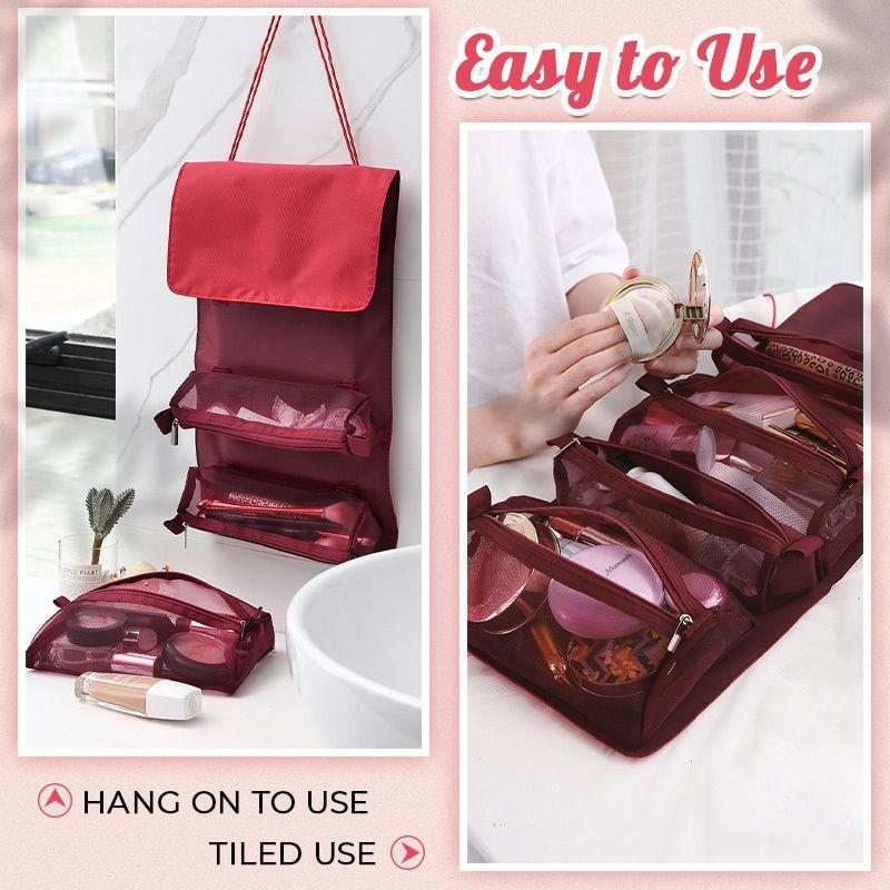 There are 4 detachable pouches for classified storage of all your cosmetic, skin products and everyday toiletries. The thoughtful mesh pouches make all the contents clear at a glance, you can easily find what you need.