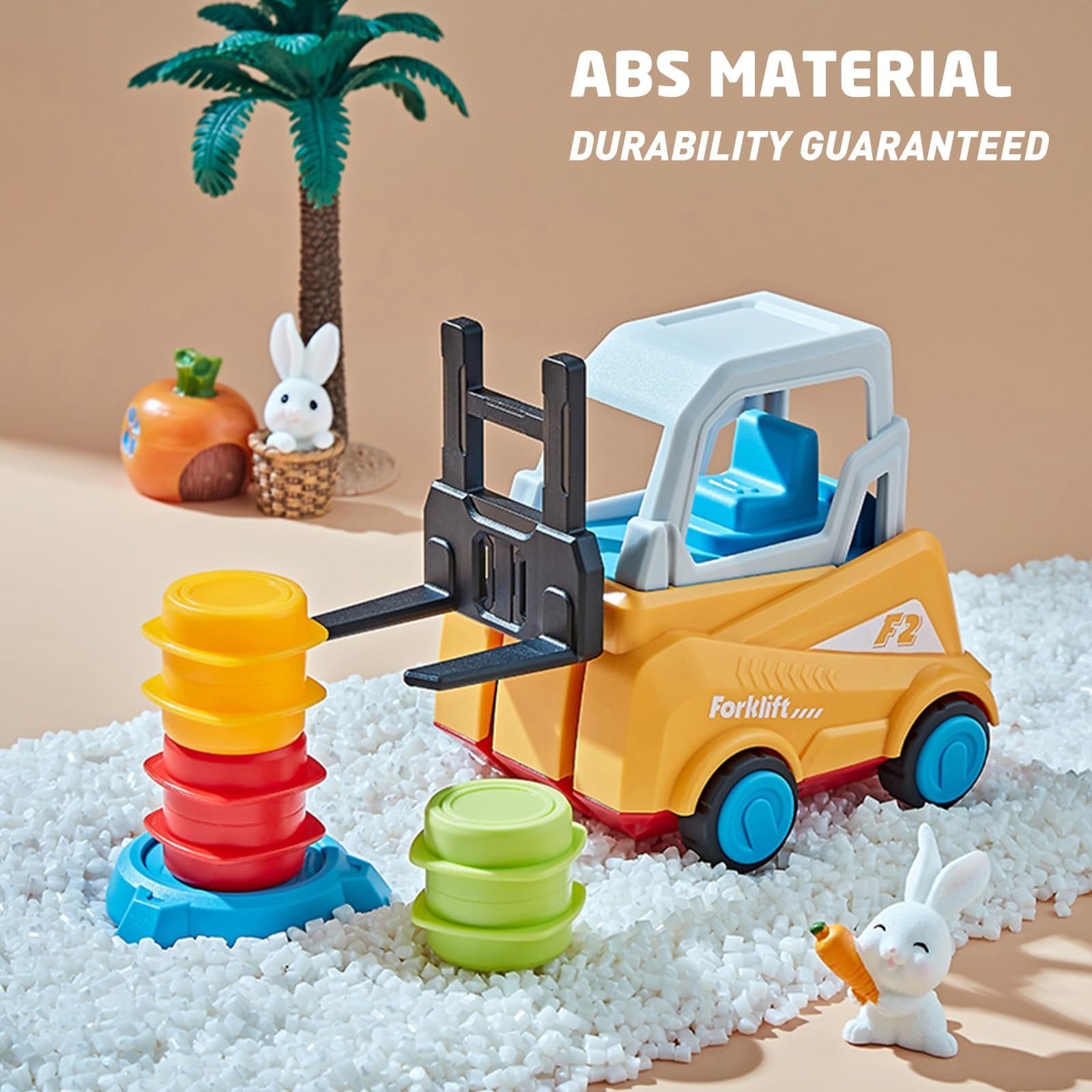 【High-quality Materials】: This forklift game is made of high-quality ABS material, which increases durability and robustness and offers children a comfortable playing experience. The edges are polished smoothly and do not scratch children's hands and skin, so children can play more comfortably.