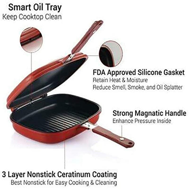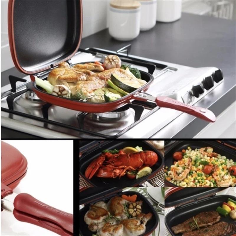 The double-sided frying pan is very convenient to use, clean and hygienic, and there is no oil smoke or oil splash on the grilled food.