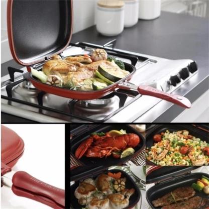 The double-sided frying pan can be divided into two pots, using the principle of the pressure cooker, the food is completely sealed and cooked, without losing the nutrients of the preserved food, the original taste is healthier and more delicious.