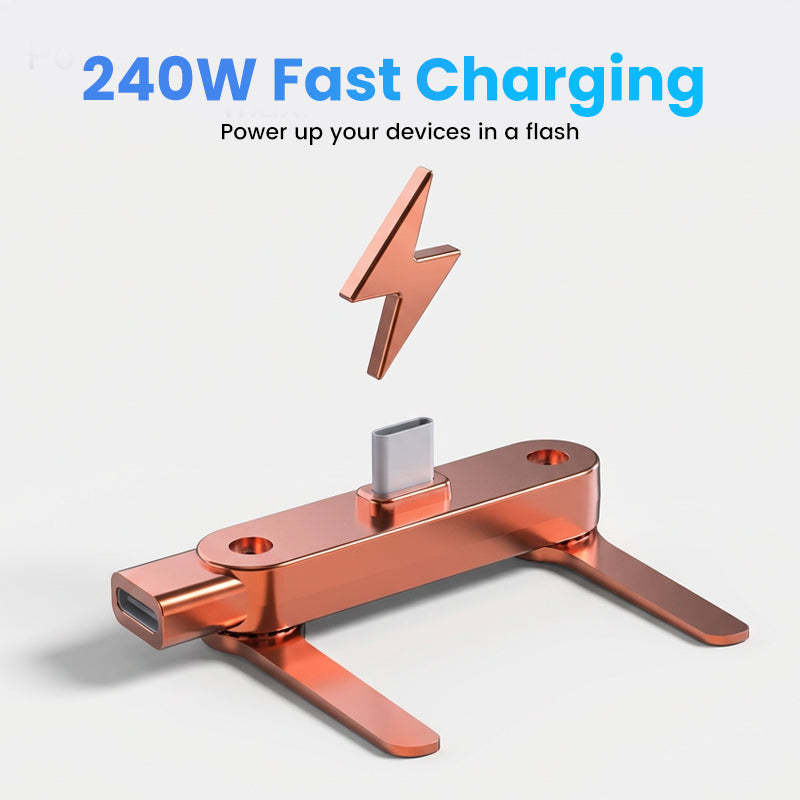 INTEGRATED 360° ROTATING STAND - Transforms from a charging adapter into a sturdy, foldable phone stand. It offers versatile viewing angles in both portrait and landscape modes for watching videos or making calls hands-free.