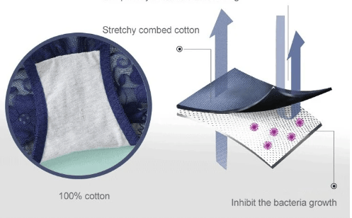 Skin-friendly cotton bottoms with advanced moisture wicking technology to quickly wick away moisture and create a dry feel.