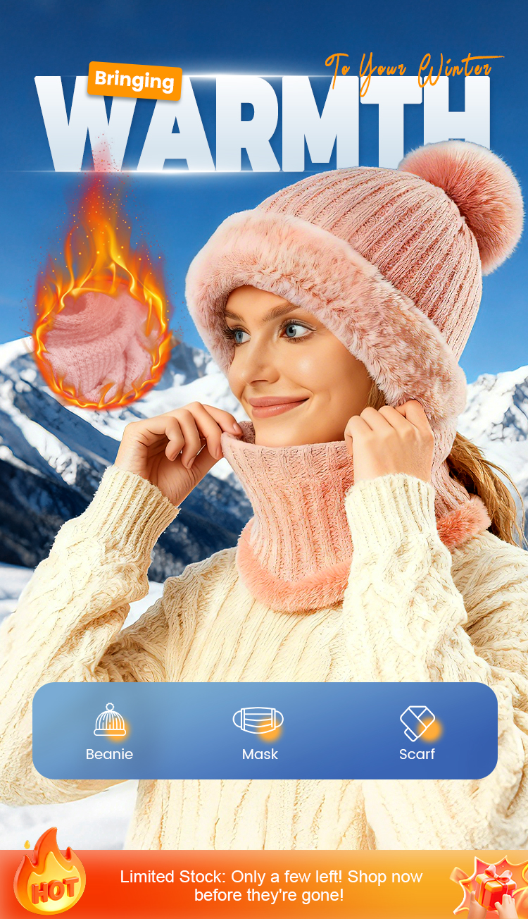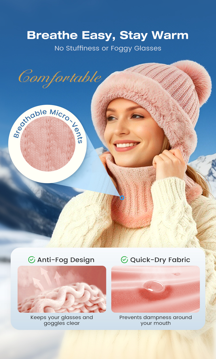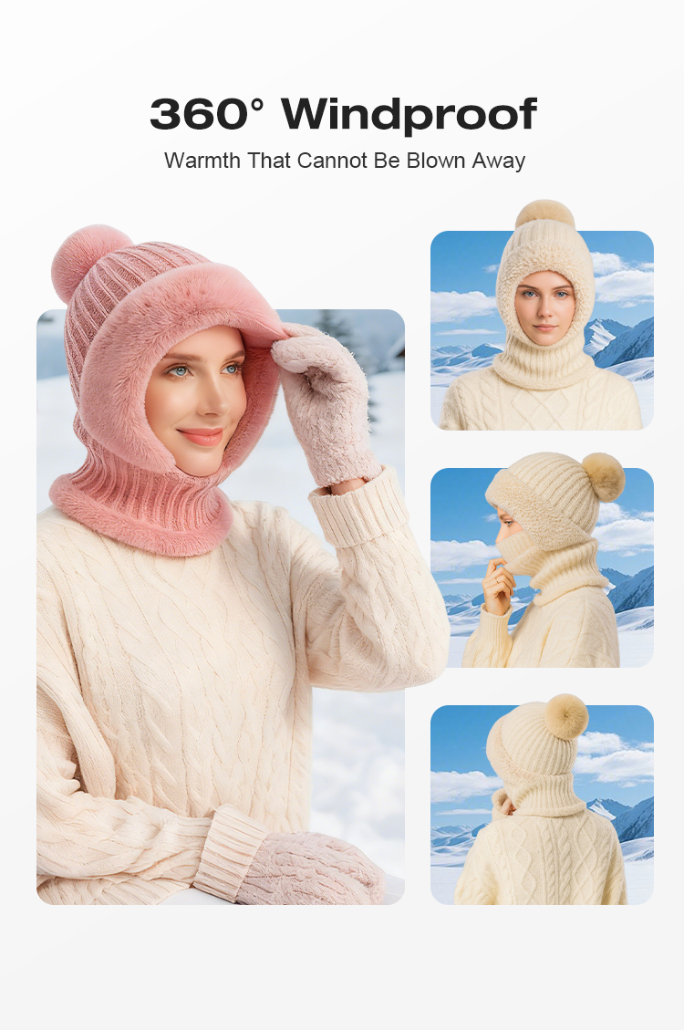 Women's Winter One-Piece Knitted Beanie Scarf Mask